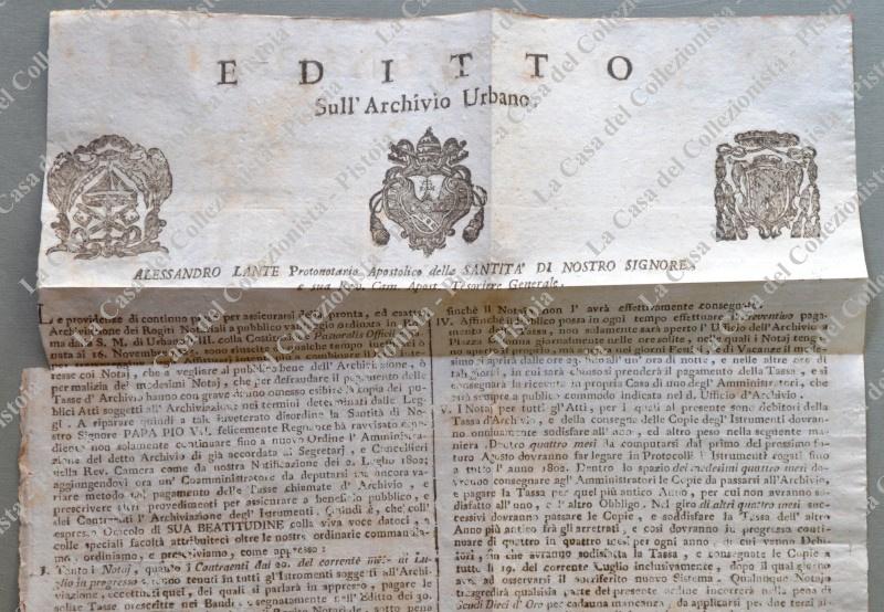 (Stato Pontificio – Notariato) EDITTO sull’Archivio Urbano. Bando dato in Roma nel 1803.