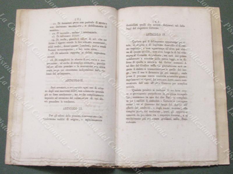 Storia Pontificio-Ducato di Lucca. "CONVENZIONE CONCHIUSA FRA SUA SANTITA' E S.A.R. IL DUCA DI LUCCA SUL RECIPROCO ARRESTO E CONSEGNA DE' REI". Roma, Tip. Camerale, 1845. Pagine 16 di cm 15x24, brossura recente. Lievi aloni. (Rif.E5250)
