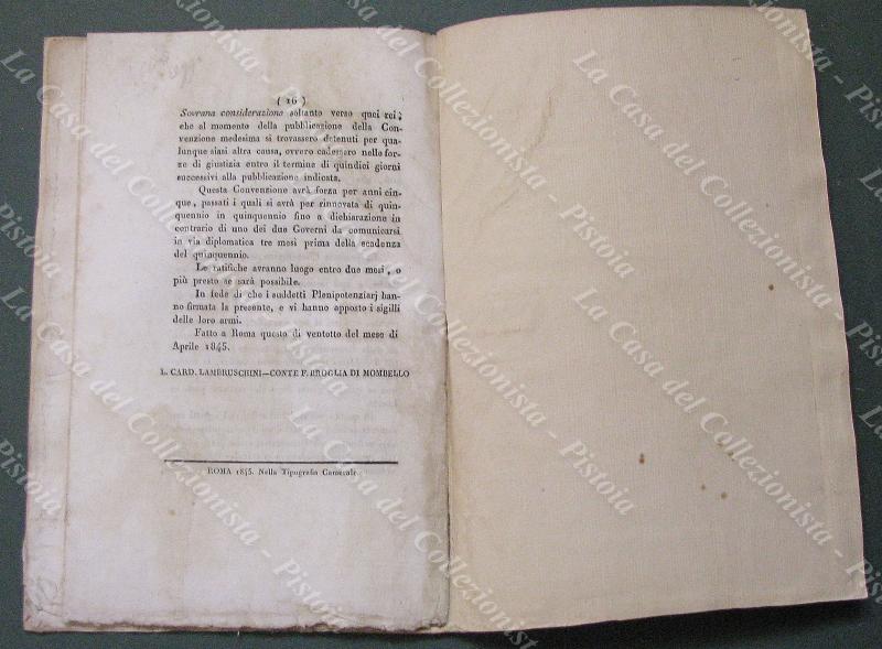 Storia Pontificio-Ducato di Lucca. "CONVENZIONE CONCHIUSA...DE' REI". Roma, Tip. Camerale, 1845