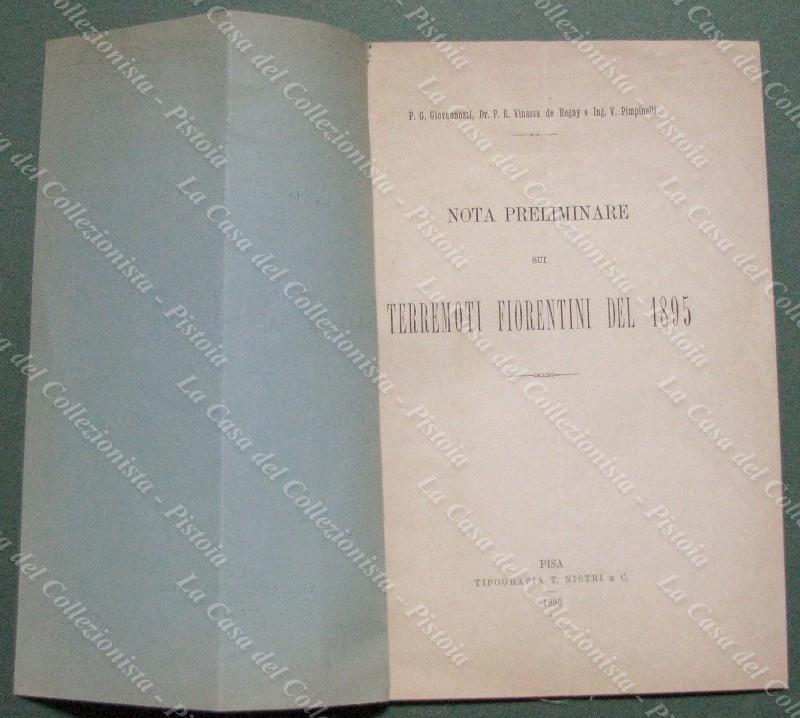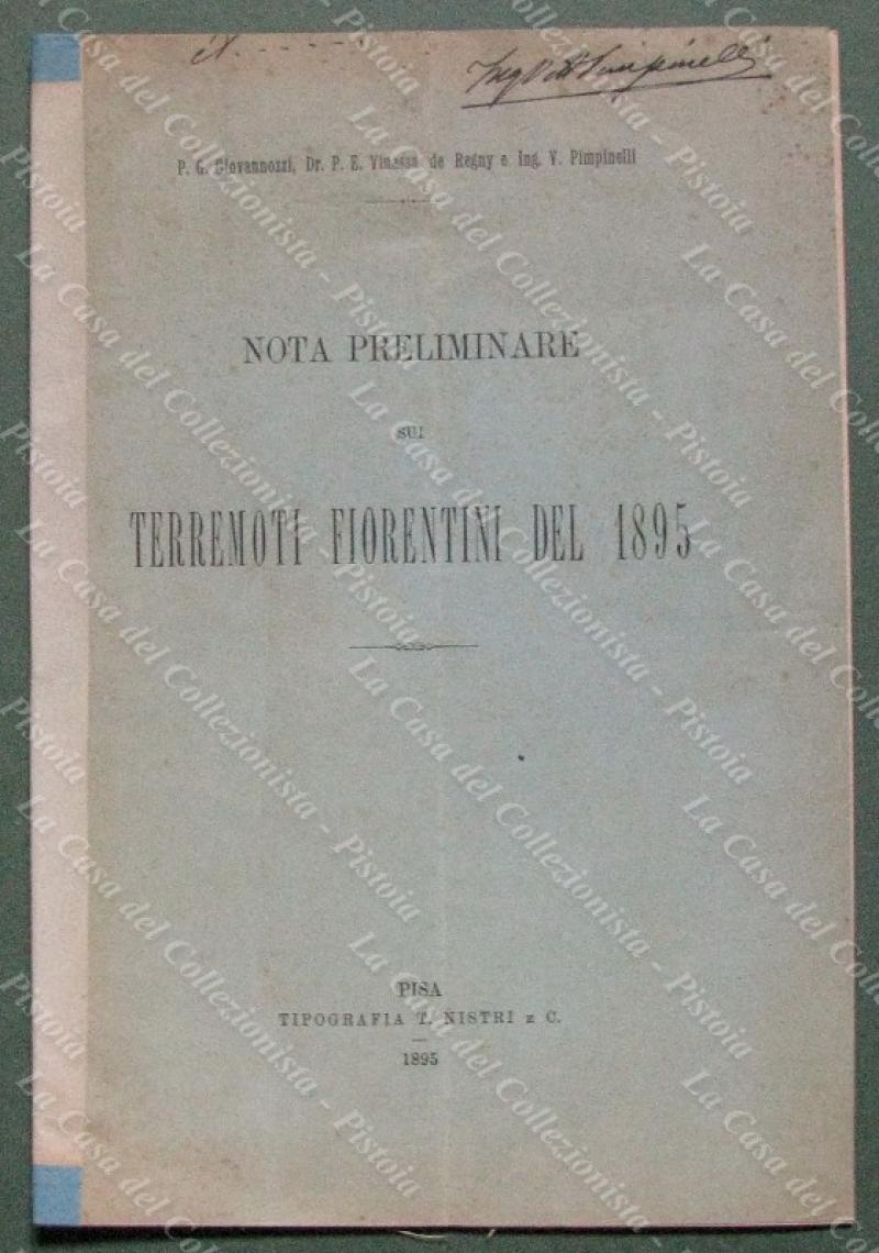 TERREMOTO 1895 FIRENZE. NOTA PRELIMINARE SUI TERREMOTI FIORENTINI DEL 1895. Pisa, Nistri, 1895.