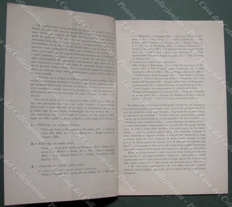 TERREMOTO 1895 FIRENZE. NOTA PRELIMINARE SUI TERREMOTI FIORENTINI DEL 1895. Pisa, Nistri, 1895. Brossura editoriale (dorso rifatto), cm 17x25, pagine 14. Lievi usure, presente piega verticale. (Rif.E5926)