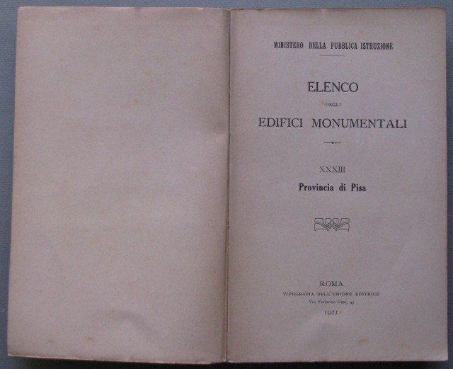 (Toscana - Pisa) Elenco degli edifici monumentali. Provincia di Pisa. A cura del Ministero della Pubblica Istruzione.