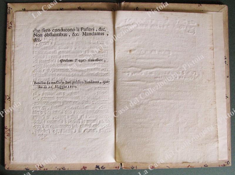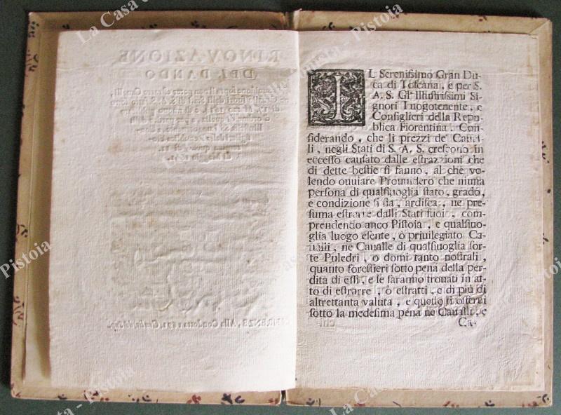 (Toscana – placchetta ‘600) RINOVAZIONE DEL BANDO e Provvisione sopra il non poter estrarre Cavalli,…. Firenze, Alla Condotta, 1691.