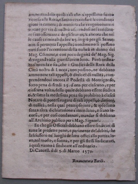 (Toscana '600 - Lucca) Ordini da osservarsi per gli officiali. Notari et altri dello Stato Lucchese.