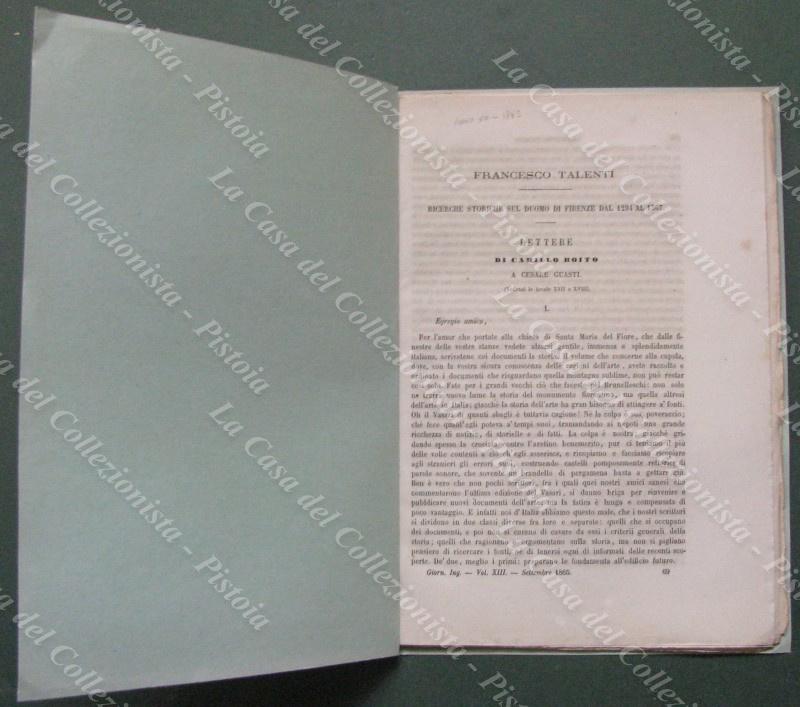 TOSCANA. Firenze. “Ricerche storiche sul Duomo di Firenze dal 1294 al 1367”. Stralcio del 1865. Tratto da IL GIORNALE DELL’INGEGNERE ARCHITETTO