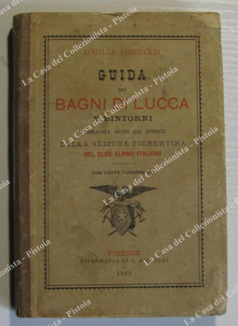 Toscana. LOMBARDI ACHILLE. GUIDA DEI BAGNI DI LUCCA E DINTORNI. Firenze, Tip. Niccolai, 1882. In 16° (cm 10x15), mezza tela editoriale. Pagine 178 + (2) di indice + una carta topografica ripiegata (cm 28x33). Normali segni d'uso, uno strappetto ricomposto alla carta. (Rif.D9605)