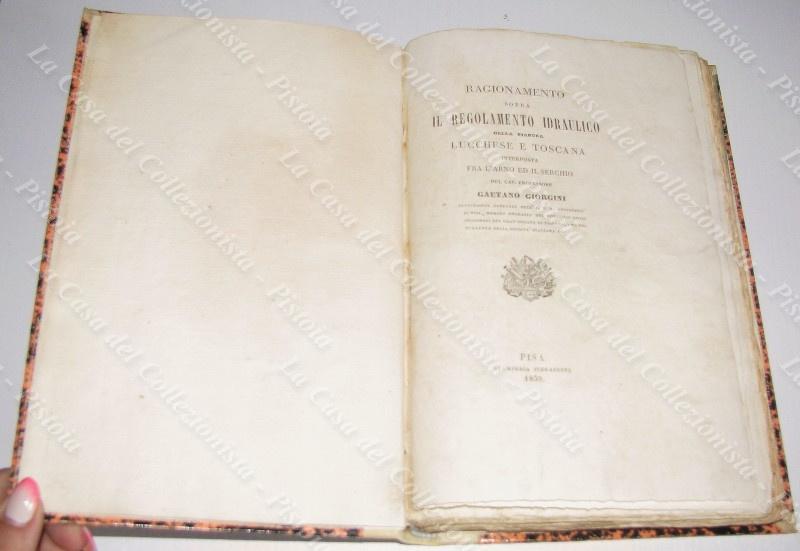 (Toscana, Lucca, Pisa – fiumi Arno e Serchio) GIORGINI GAETANO. "RAGIONAMENTO SOPRA IL REGOLAMENTO IDRAULICO...". Pisa, Pieraccini, 1839