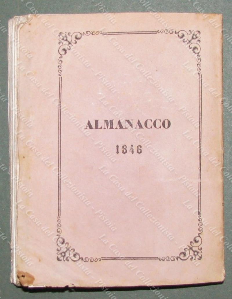 Toscana-Siena. IL MANGIA. Almanacco senese pell'anno 1846. Siena, Giovanni Rossi. Cm 10x13,5, brossura tipografica originale. Pagine 220+8 (manca l'antiporta). Minime usure. (Rif.E5945)