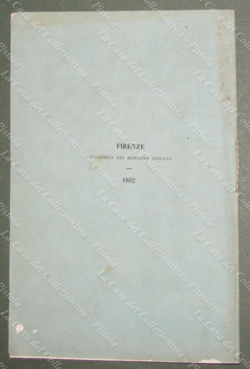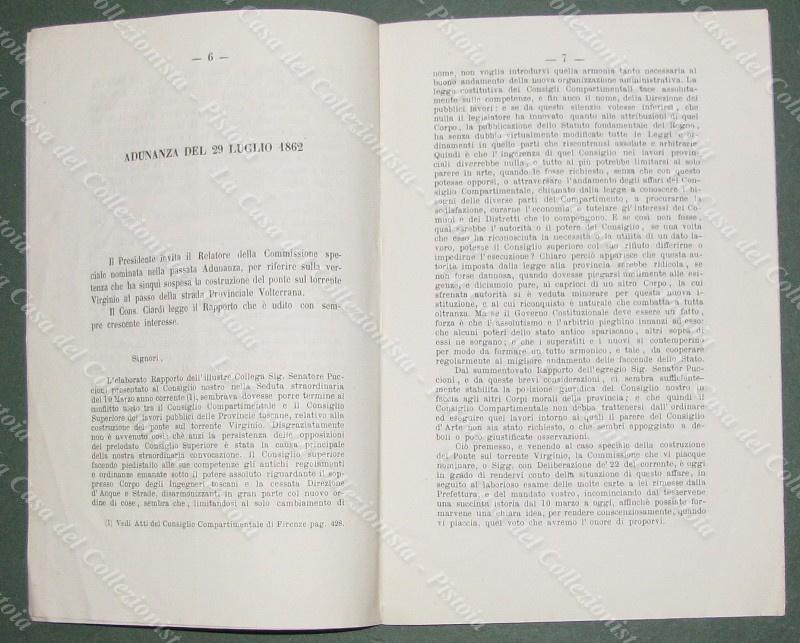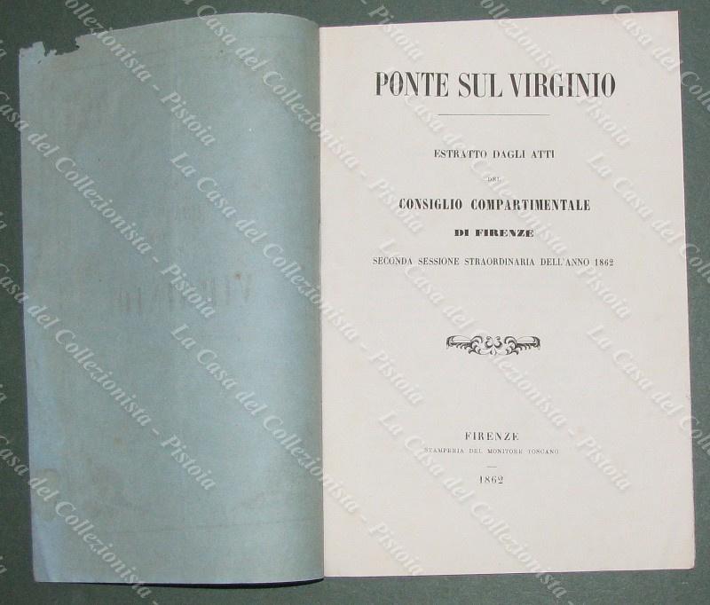 Toscana-Volterra. PONTE SUL VIRGINIO. Estratto degli atti del Consiglio Comportamentale di Firenze. Ivi, Stamp. del Monitore Toscano, 1862. Cm 14x22, brossura originale tipografica, pagine 22. Piccoli difetti. (Rif.E5911)