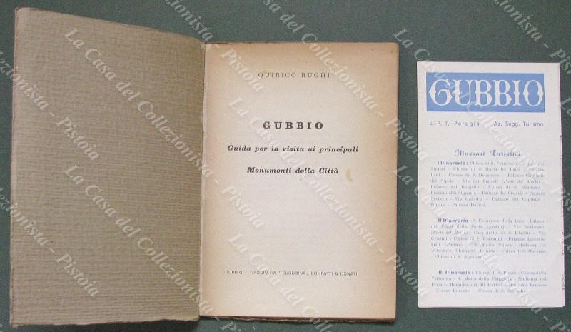 Umbria-Gubbio. RUGHI QUIRICO. GUBBIO. Guida per la visita ai principali monumenti della città. Gubbio, Tip. Eugubino, s.d. (circa 1960), brossura editoriale illustrazioni, cm 12x17, pagine 73+3. Unito opuscolo pieghevole. Ottima conservazione. (Rif.E5243)