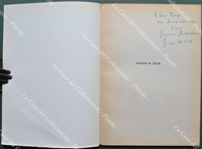 (Sicilia) ARCIDIACONO GIOVANNI. VIAGGIO IN SICILIA. Appunti su una realtà amara. Firenze, Il Fauno Ed., 1969. In 8° (cm 17x24), brossura editoriale illustrata, pp. (2) + 42 + (6) con fuori testo 6 disegni di Giovanni Acci. Dedica dell’autore. Ottima conservazione. (Rif.D7831-366/71)