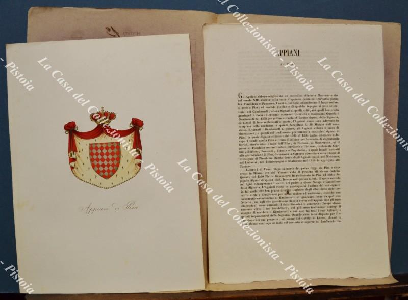 (Araldica) Famiglia APPIANI di PISA. Fascicolo completo (tavola + testo). Firenze, Ed. Ulisse Diligenti, 1862/1865.