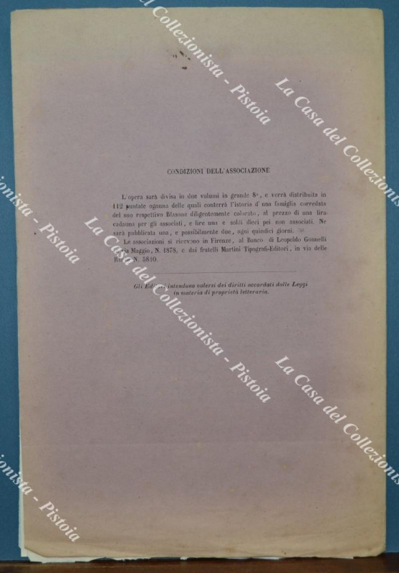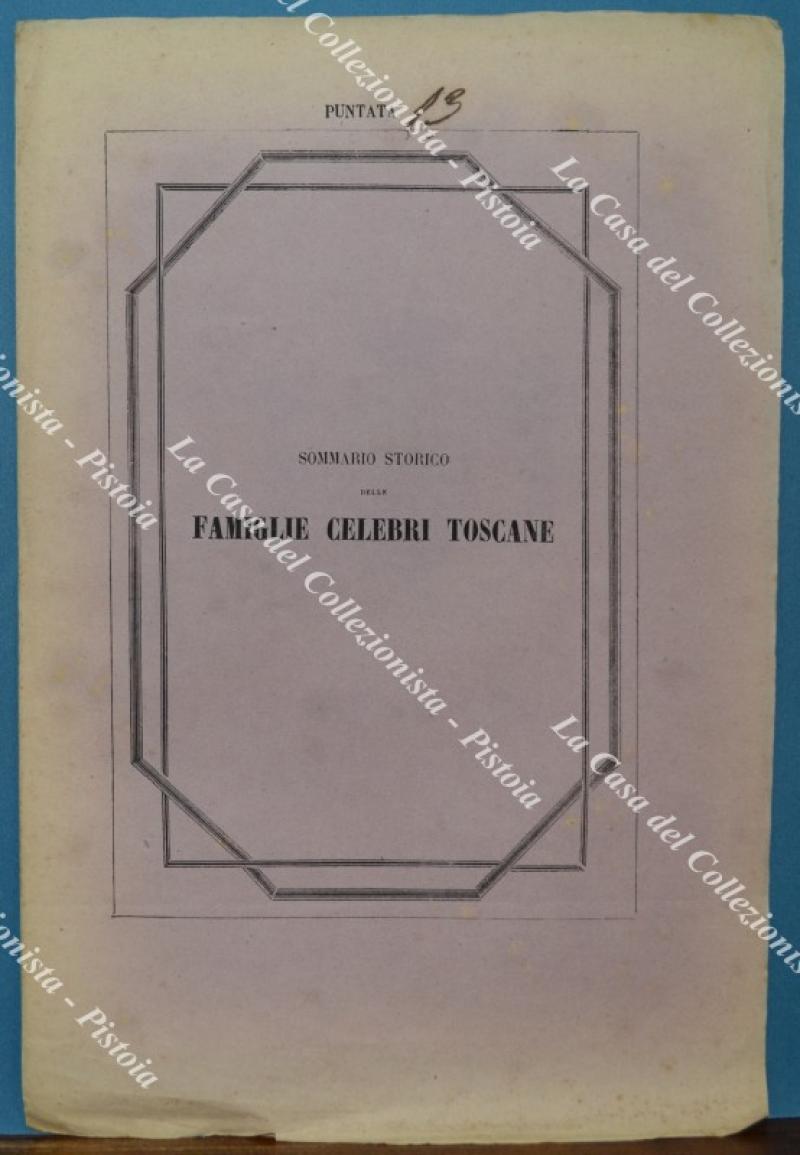 (Araldica - Toscana) Famiglia APPIANI di PISA. Fascicolo completo di cm 19,5x28,5: brossura editoriale contenente tavola colorata all'epoca a mano e 4 pagine di testo relative alla storia della famiglia. Il fascicolo è tratto dall'opera SOMMARIO STORICO DELLE FAMIGLIE CELEBRI TOSCANE di Tiribilli Giuliani - Luigi Passerini edita tra il 1862 ed il 1865 a Firenze da Alessandro Diligenti. Buona conservazione. (Rif.F7582)