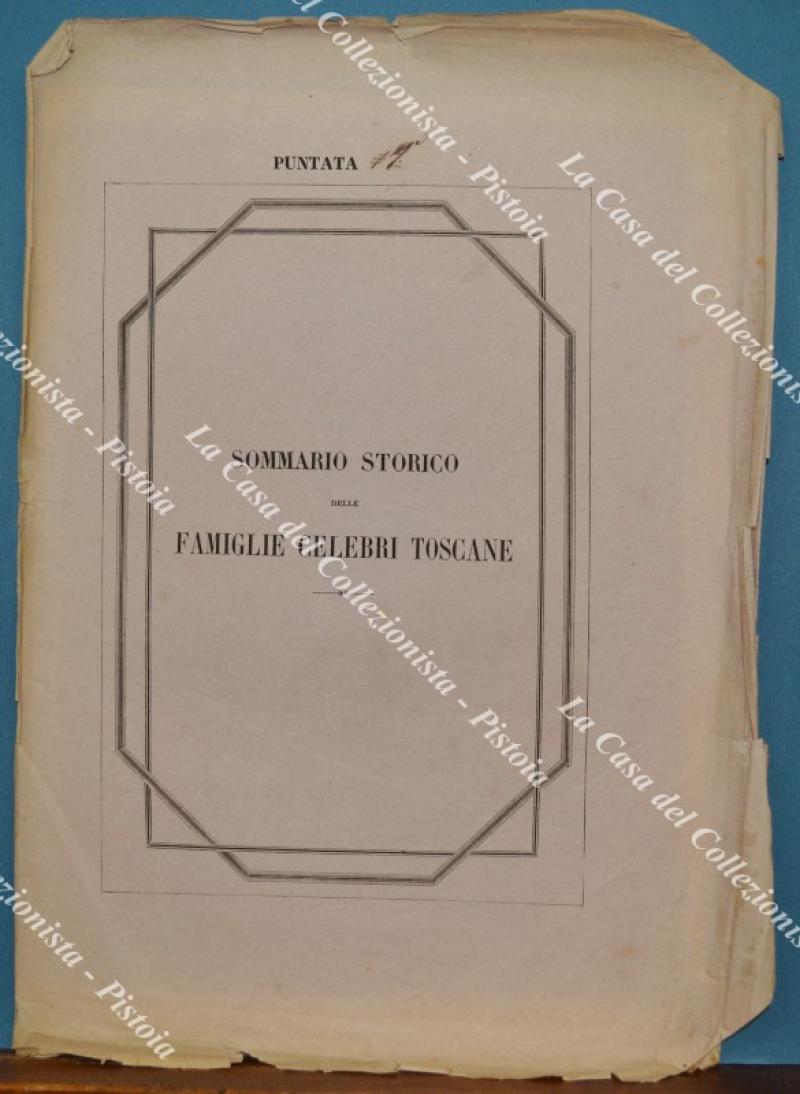 (Araldica - Toscana) Famiglia CONCINI d'AREZZO. Fascicolo completo di cm 19,5x28,5: brossura editoriale contenente tavola colorata all'epoca a mano e 3 pagine di testo relative alla storia della famiglia. Il fascicolo è tratto dall'opera SOMMARIO STORICO DELLE FAMIGLIE CELEBRI TOSCANE di Tiribilli Giuliani - Luigi Passerini edita tra il 1862 ed il 1865 a Firenze da Alessandro Diligenti. Buona conservazione, piccoli difetti laterali alla brossura editoriale. (Rif.F7572)