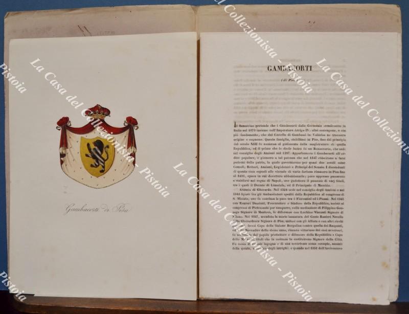 (Araldica) Famiglia GAMBACORTI di PISA. Fascicolo completo (tavola + testo). Firenze, Ed. Ulisse Diligenti, 1865.