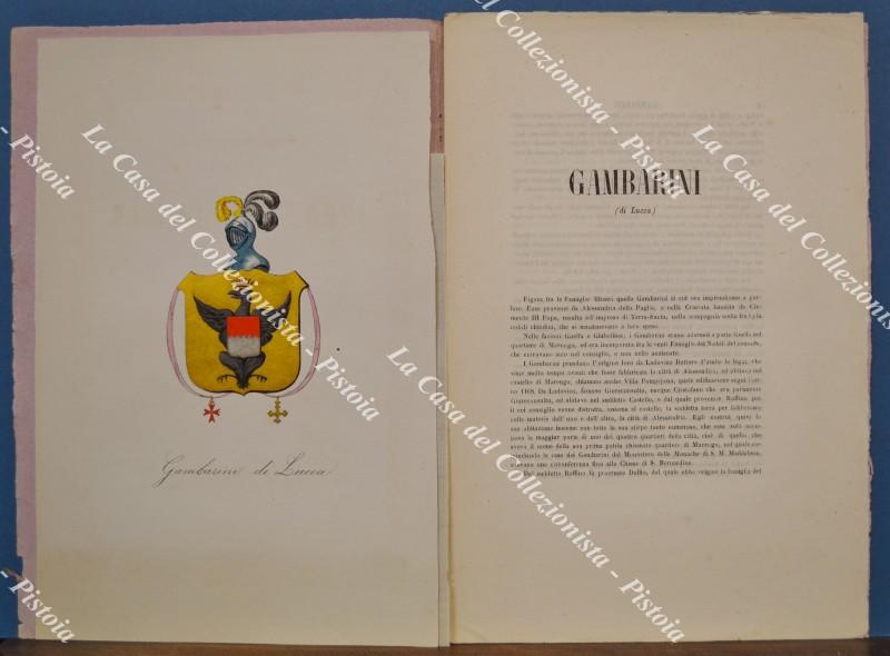 (Araldica) Famiglia GAMBARINI di LUUCA. Fascicolo completo (tavola + testo). Firenze, Ed. Ulisse Diligenti, 1865.
