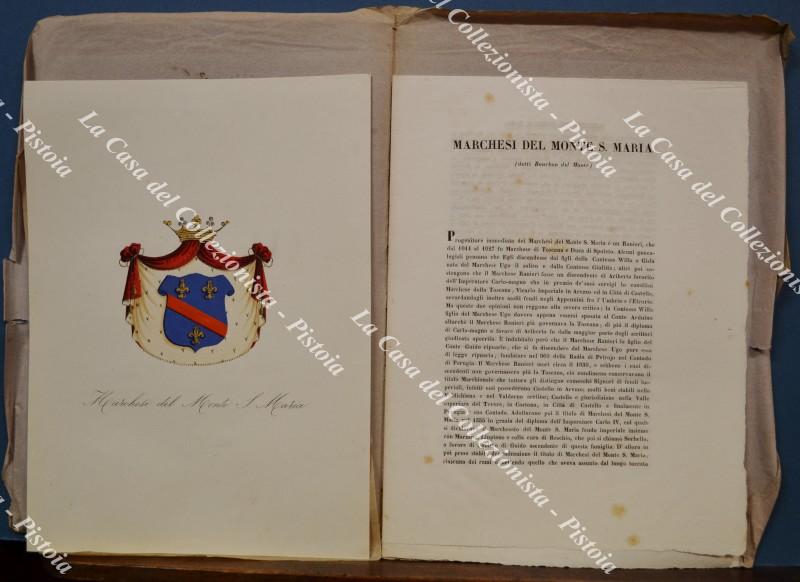 (Araldica) Famiglia MARCHESI DEL MONTE S. MARIA (Firenze). Fascicolo completo (tavola + testo). Firenze, Ed. Ulisse Diligenti, 1862/1865.