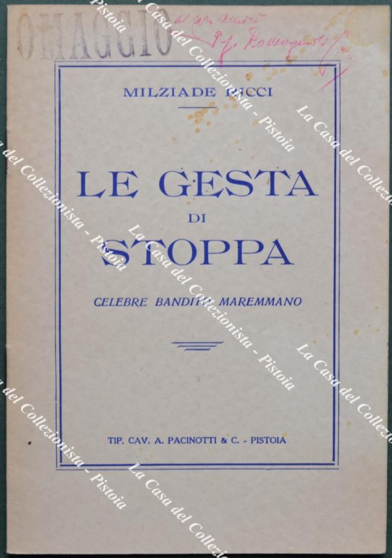 LE GESTA DI STOPPA CELEBRE BANDITO MAREMMANO. Pistoia, Tip. Pacinotti, 1956.