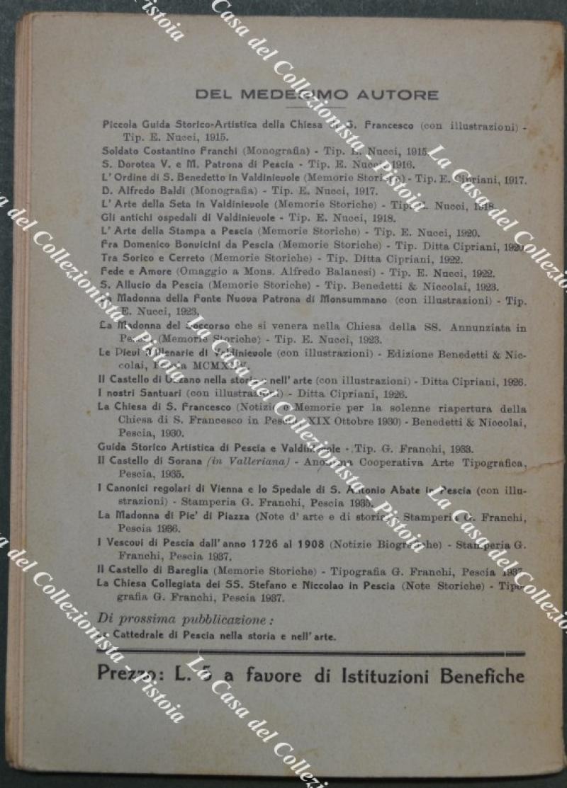 (Pistoia - Valdinievole) NUCCI Ermenegildo. IN VALDINIEVOLE. GUIDA STORICO - ARTISTICA DI VILLA BASILICA E DEL SUO TERRITORIO COMUNALE. Pescia, Tip. Franchi, 1938. Cm 12x17, brossura originale illustrata, pagine 77. Buona conservazione. (Rif.F7291)
