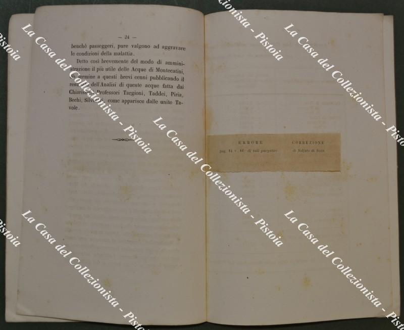 (Pistoia) CENNO SULLE PROPRIETA' MEDICINALI E SULL'USO DELLE ACQUE MINERALI DELLE RR. TERME DI MONTECATINI IN VALDINIEVOLE.