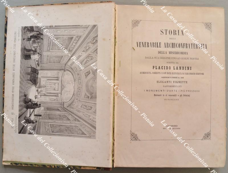 STORIA della VENERABILE ARCICONFRATERNITA DELLA MISERICORDIA DALLA SUA ORIGINE FINO AI GIORNI NOSTRI SCRITTA DA PLACIDO LANDINI ACCRESCIUTA, CORRETTA E CON NOTE ILLUSTRATA DA VARI INSIGNI SCRITTORI ARRICCHITA DI ELEGANTI VIGNETTE RAPPRESENTANTI I MONUMENTI D’ARTE I PIU’ PREZIOSI Esistenti in sì venerabili e pii Sodalizj IN TOSCANA. Livorno, Tip. Zecchini, 1871