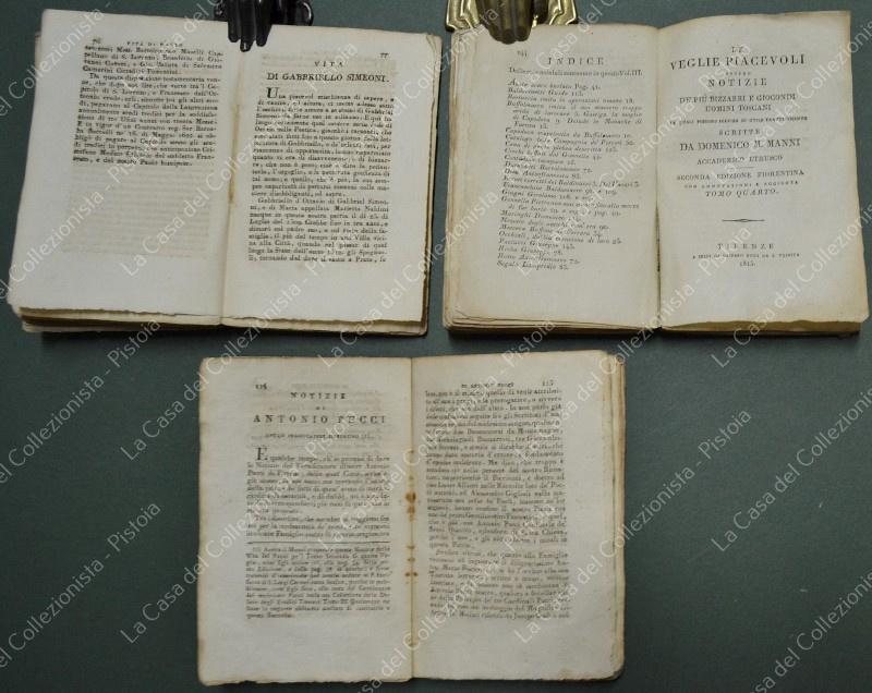 (Toscana - biografie). MANNI DOMENICO MARIA. LE VEGLIE PIACIEVOLI OVVERO NOTIZIE...TRATTENIMENTO. 2 ediz. fiorentina. 1815 - 1816
