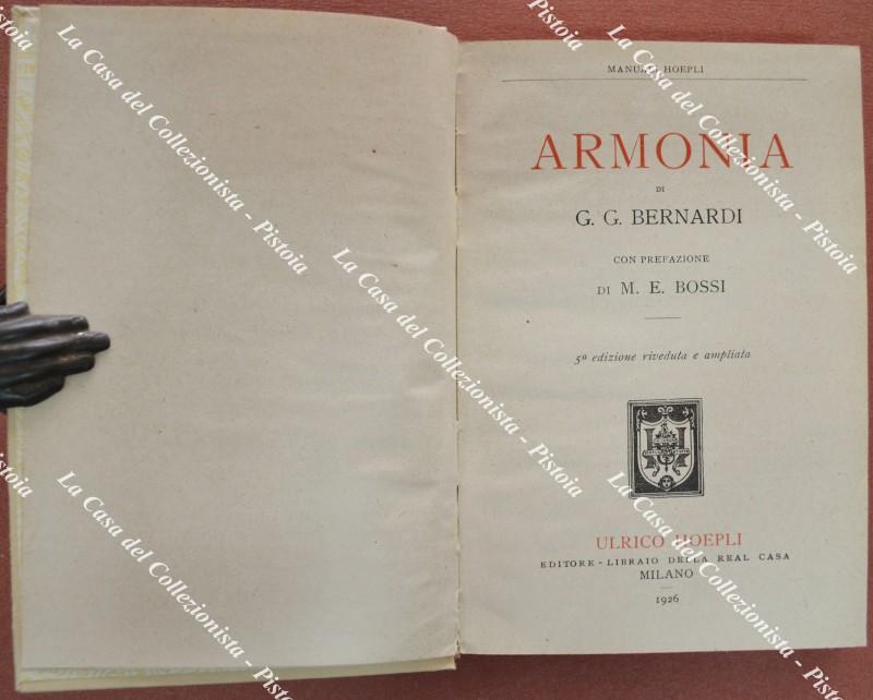 (Manuali Hoepli) BERNARDI G.G.. ARMONIA. Quinta edizione riveduta e ampliata. Milano, Hoepli, 1926. In 16°, tela edit. ill., pp. XXIV + 383. Ottima conservaz.. (Rif.F6633-76)
