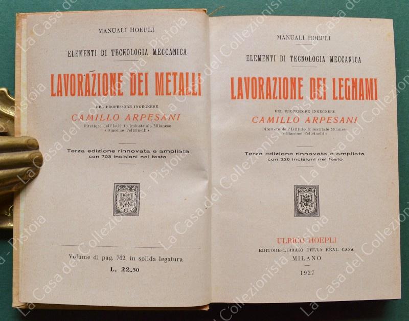 Manuale Hoepli. ARPESANI C.. LAVORAZIONE DEI LEGNAMI. Milano, Hoepli, 1917