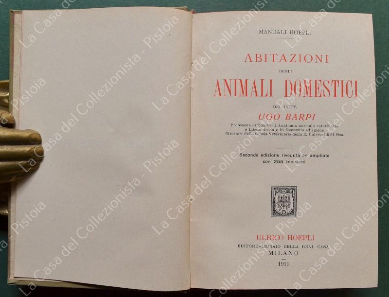 Manuale Hoepli. BARPI UGO. ABITAZIONI DEGLIA ANIMALI DOMESTICI. Milano, Hoepli, 1911