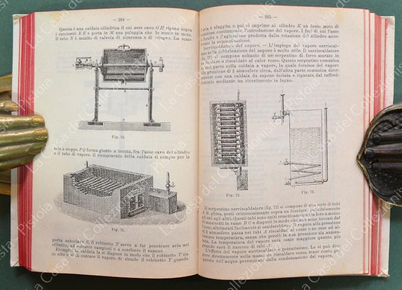 Manuale Hoepli. MARAZZA ETTORE. L'INDUSTRIA SAPONIERA. Con alcuni cenni sulle industrie della soda e della potassa. Milano, Hoepli,1896. Prima edizione. In 16°, tela editoriale illustrata, pagine VIII + 410 con 111 figure e molte tabelle. Ottima conservazione.