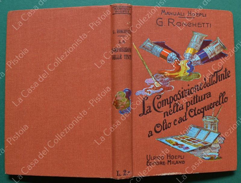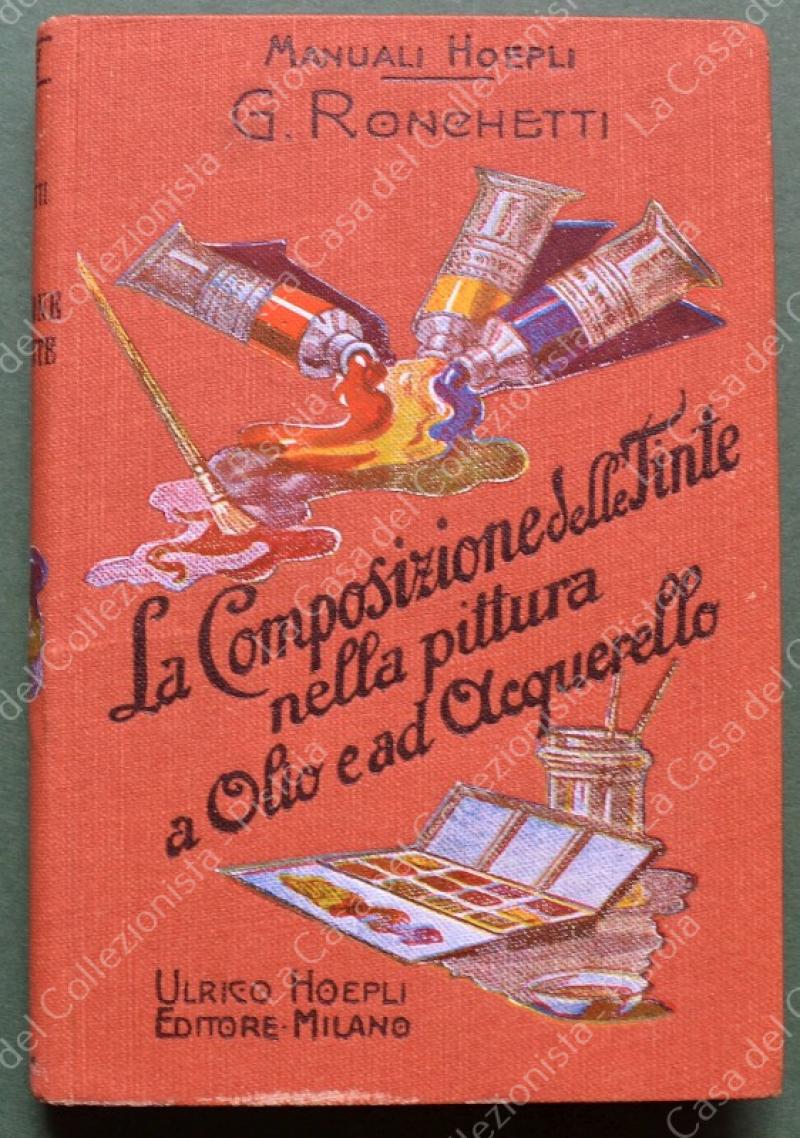 Manuale Hoepli. RONCHETTI G.. LA COMPOSIZIONE DELLE TINTE NELLA PITTURA A OLIO E AD ACQUERELLO. Milano, Hoepli, 1913. In 16°, tela editoriale illustrata, pagine VIII + 186. Ottima conservazione. (Rif.F8052)