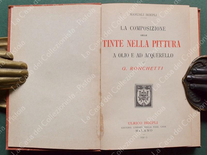 Manuale Hoepli. RONCHETTI G.. LA COMPOSIZIONE DELLE TINTE NELLA PITTURA A OLIO E AD ACQUERELLO. Milano, Hoepli, 1913