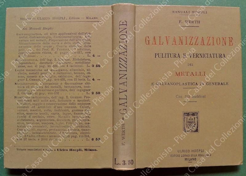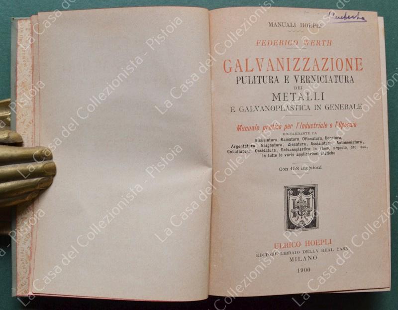 Manuale Hoepli. WERTH FEDERICO. GALVANIZZAZIONE. PULITURA E VERNICIATURA DEI METALLI.... Milano, Hoepli, 1900