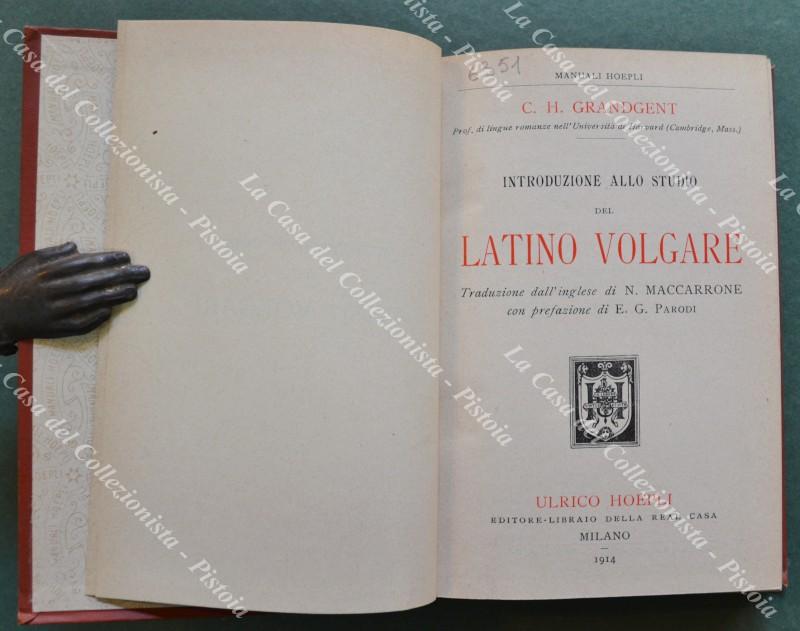(Manuali Hoepli) Grandgent C.H.. INTRODUZIONE ALLO STUDIO DEL LATINO VOLGARE. Milano, Hoepli, 1914. In 16° (cm 10,5x15), tela editoriale, pp. XXI + 298. Ottima conservazione. (Rif.F5281)