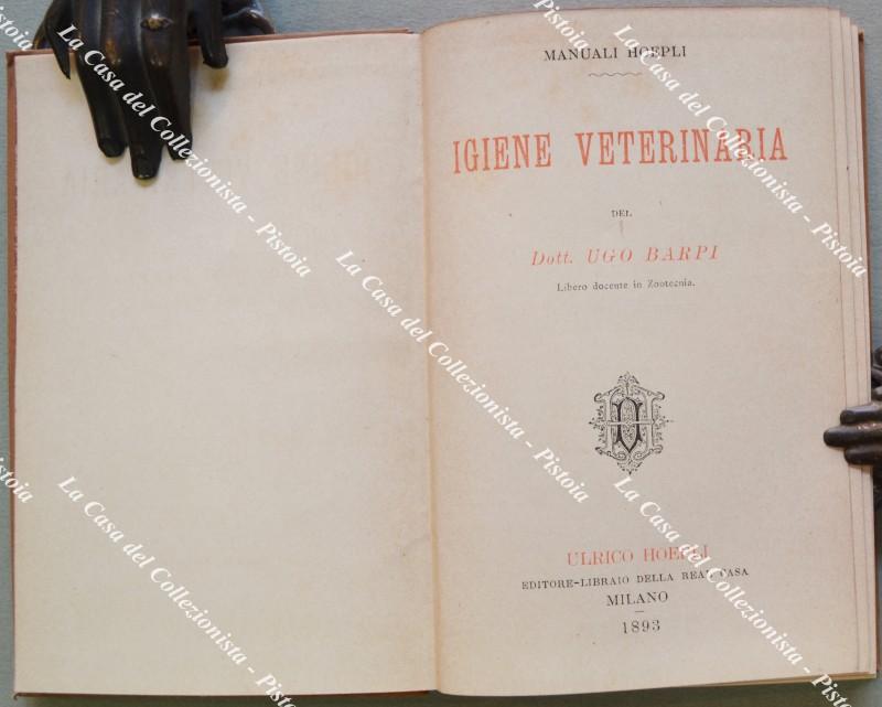 (Manuali Hoepli) BARPI U.. IGIENE VETERINARIA. Milano, Hoepli, 1893. Cm 10.5x15, tela editoriale, pp. XI + 228. Ottima conservaz.. (Rif.F6132-76)