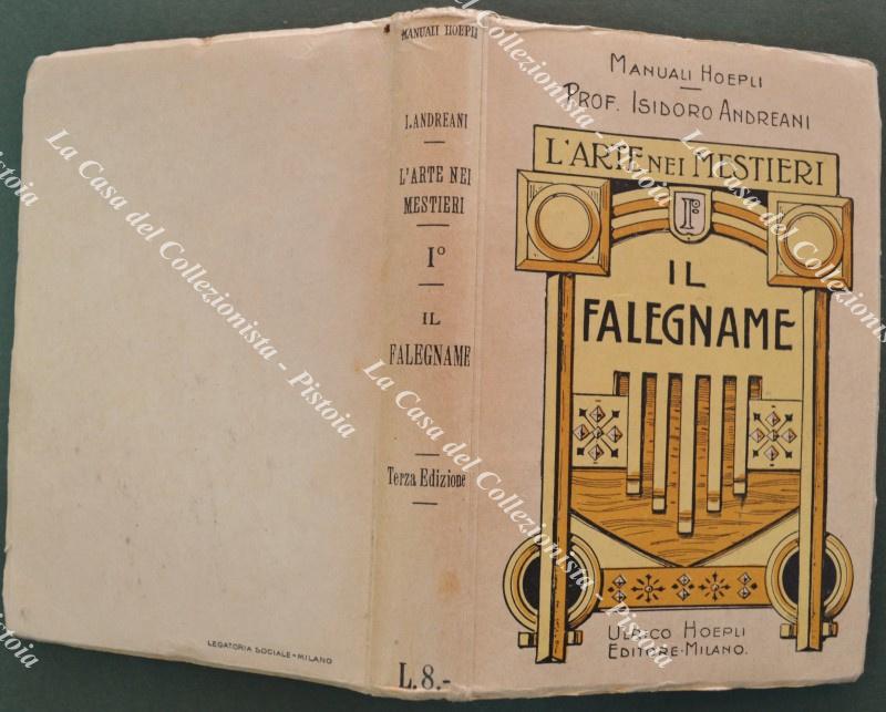 (Manuali Hoepli) ANDREANI ISIDORO. IL FALEGNAME. Terza edizione con 264 incisioni e 25 tavole. Milano, Hoepli, 1920. In 16° (cm 10,5x15,5), cartonatura editoriale illustrata, pp. XII + 297. Ottima conservazione. (Rif.F7873)