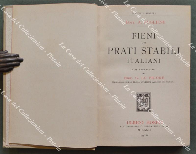 (Manuali Hoepli) PUGLIESE A.. Fieni dei prati stabili italiani. Milano, Hoepli, 1916. Cm 10x25, tela editoriale illustrata, pp. XII + 418. Conservazione veramente ottima. (Rif.F2336-445/75)