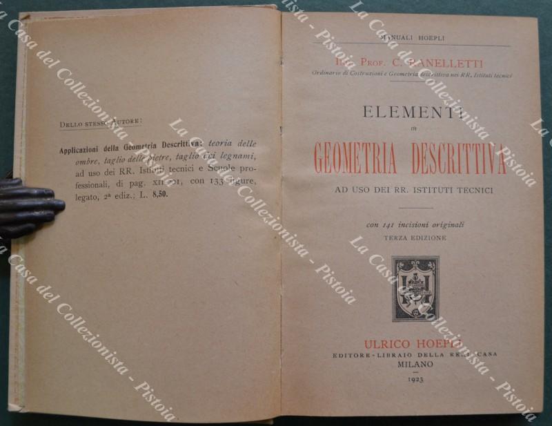 (Manuali Hoepli) Ranelletti C.. ELEMENTI DI GEOMETRIA DESCRITTIVA. Terza edizione. Milano, Hoepli, 1923.
