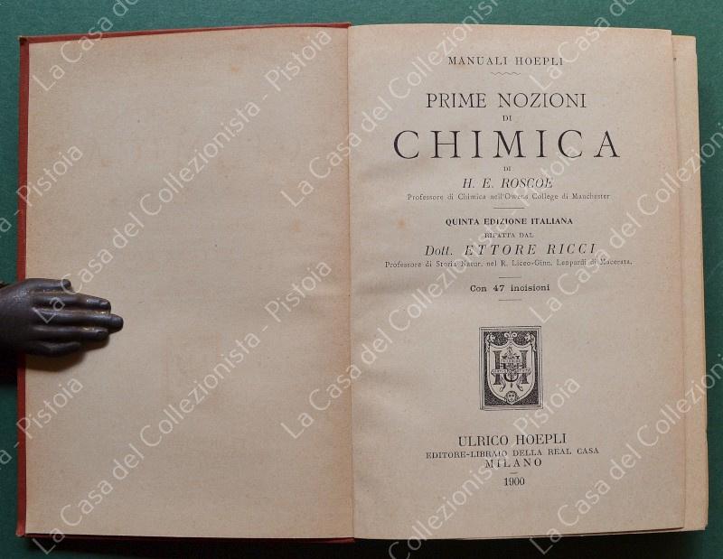 Manuali Hoepli. Roscoe H. E. - Ricci E.. PRIME NOZIONI DI CHIMICA. Milano, Hoepli, 1900