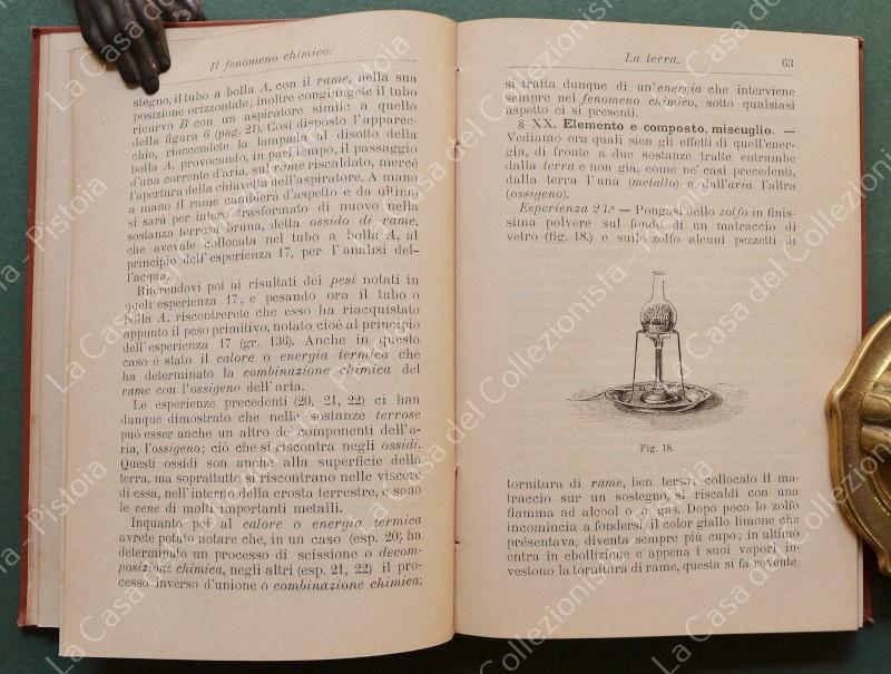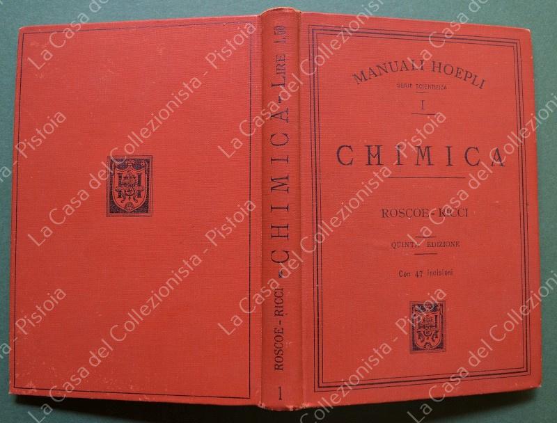 Manuali Hoepli. Roscoe H. E. - Ricci E.. PRIME NOZIONI DI CHIMICA. Quinta edizione italiana rifatta del dr. Ettore Ricci. Milano, Hoepli, 1900. In 16°, tela editoriale, pagine X + 228 con 47 incisioni nel testo. Ottima conservazione. (Rif.F8042)