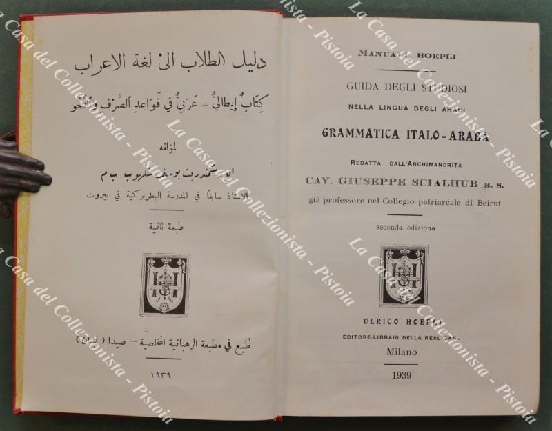 (Manuali Hoepli) SCIALHUB GIUSEPPE. Grammatica italo - araba. Seguita da un vo cabolario italiano - arabo. Seconda edizione. Milano, Hoepli, 1939.