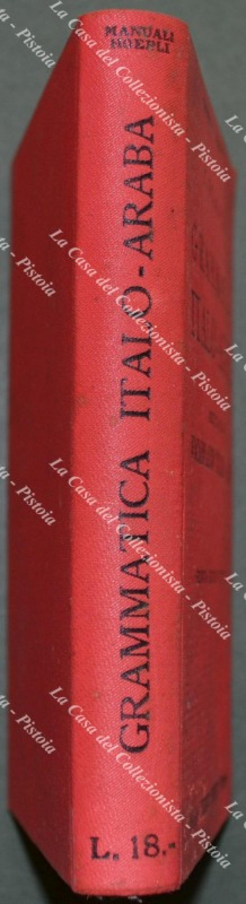 (Manuali Hoepli) SCIALHUB GIUSEPPE. Grammatica italo - araba. Seguita da un vocabolario italiano - arabo. Seconda edizione. Milano, Hoepli, 1939. Cm 10x15, tela editoriale, pp. 336. Ottima conservazione. (Rif.F2353-462/75)