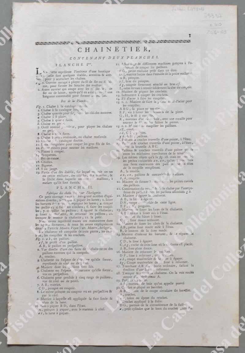 ANNO 1781. DIDEROT ET D’ALEMBERT. FABBRICANTE DI CATENE, “CHAINETIER”.