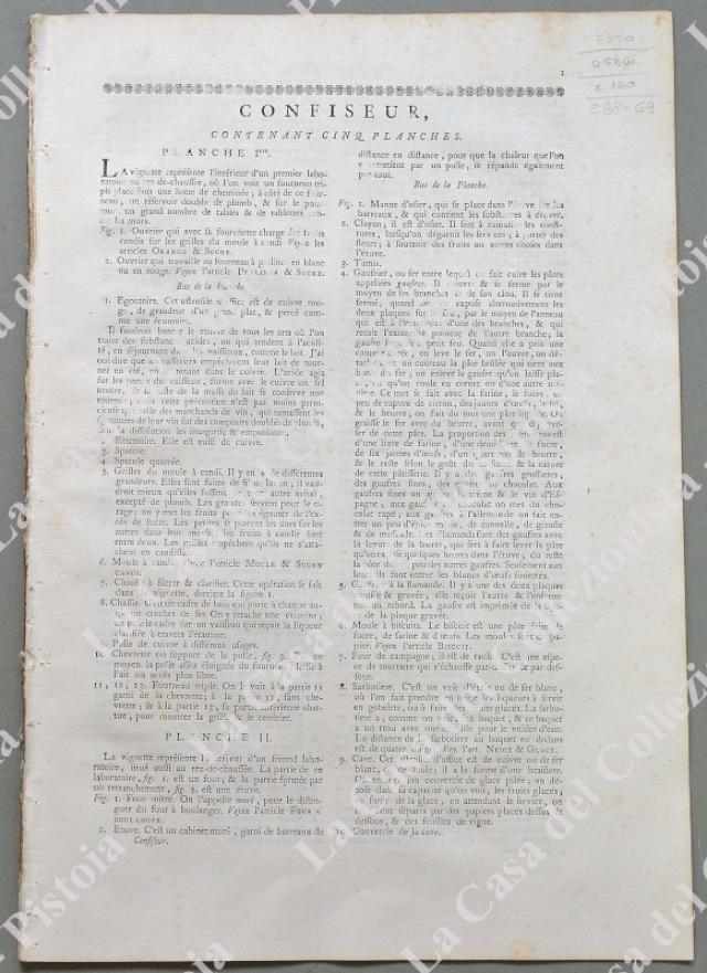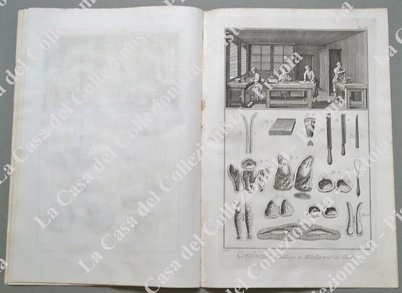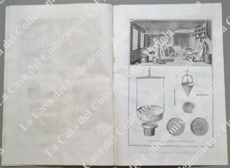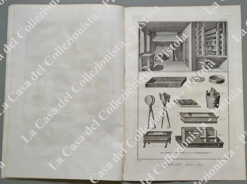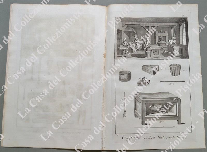 ANNO 1781. PASTICCIERE, “CONFISEUR”. Pagine 3 di testo e 5 tavole raffiguranti lavoranti, attrezzi, luoghi di lavoro, ecc.. Fascicolo intero tratto da DIDEROT ET D’ALEMBERT. Encyclopedie metodique ou dictionnaire raisonné des sciences, des arts et des metiers …. Grandiosa opera in folio (circa cm 26x39) edita nella II° metà del 1700. Ottima conservazione. (Rif.D5361 - 288/69)