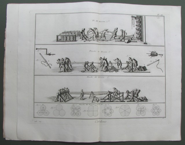 (Fabbrica di Corde). DIDEROT ET D'ALEMBERT. Fascicolo completo in folio. Metà 1700