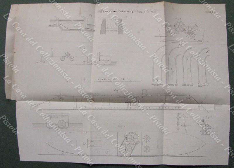 MEMORIE DI INTERESSE LOCALE E SCIENTIFICO. FUNICOLARI. “Del sistema di rimorchio funicolare per fiumi e canali”. Stralcio di pagine 13 + fuori testo una tavola più volte ripiegata. Anno 1870. Tratto da IL GIORNALE DELL’INGEGNERE ARCHITETTO edito a Milano a partire dal 1854. Formato cm 18,5x26. (E5210-364/68)