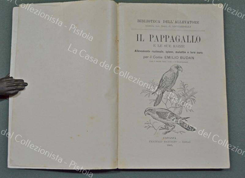 (Pappagalli) BUDAN EMILIO. IL PAPPAGALLO E LE SUE RAZZE. Allevamento razionale, igiene, malattie e loro cura. Catania, Battiato, 1905. Cm 13x20, brossura editoriale illustrata, pp. 180 con 8 tavole fuori testo. Buona conservazione. (Rif.F4103)