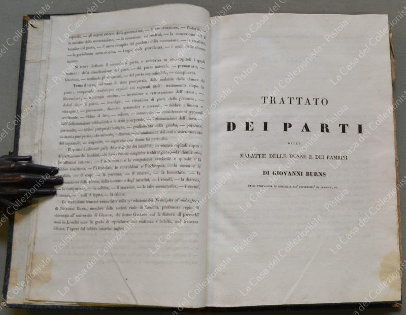(Ostetricia) LEVI M.G.. OSTETRICIA. Parti, malattie delle donne e dei bambini. Prima traduzione italiana. Venezia, Antonelli, 1841. Cm 14x22, mezza pelle coeva con titoli in oro al dorso. Pagine 464 con 2 tavole fuori testo ripiegate. Volume solido e ben conservato eccetto qualche ingiallimento alle due tavole e qulche difetto. (Rif.F6751)