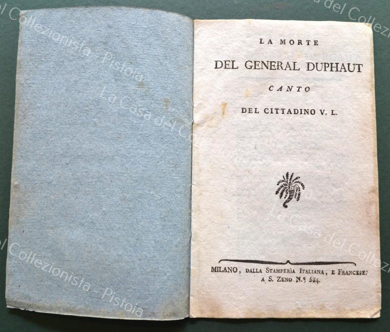 (Dominazione francese - poesia) C. LA MORTE DEL GENERALE DUPHAUT... Milano, s.d. (ma 1798)