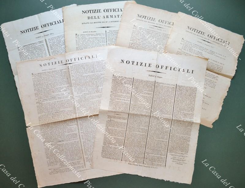 del primo impero francese. DISPONIAMO di 6 rari bandi contenenti NOTIZIE OFFICIALI dalle zone di guerra dal 3 giugno 1813 al 15 novembre 1813. Stampati a Lucca da Francesco Bertini, misurano da cm 30x40 a cm 40x50. Piccole imperfezioni, ma buona conservazione. (Rif.D7898-98/72)